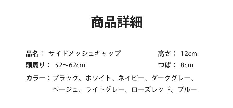 【サイドメッシュキャップ】50g超軽量 通気速乾 UPF50+UVカット 超快適 フィット感抜群!2点で3980円 3点目900円!